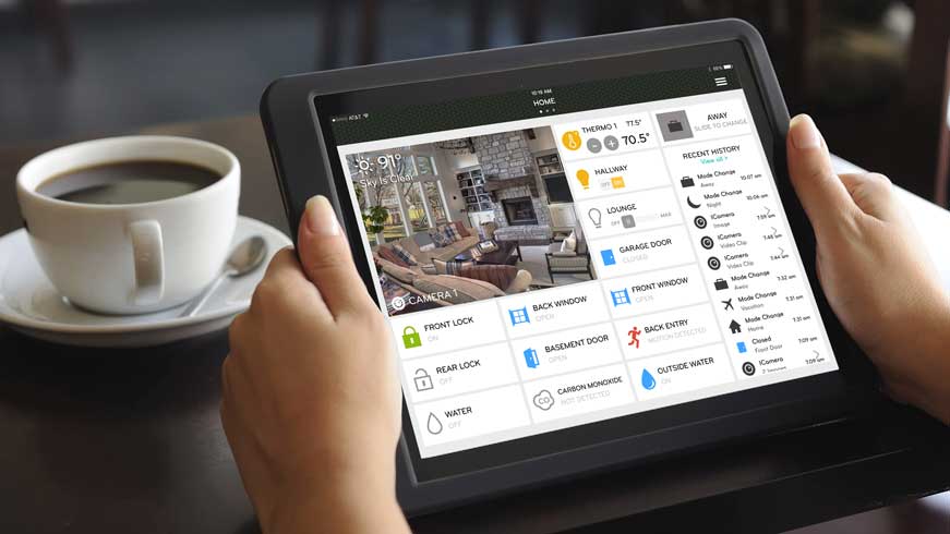 A set of devices that work together to give you customized mobile access to monitor and control everything from doors and lamps, to thermostats and coffeepots. With home automation you can know when doors and windows open or close, and even use live video to see who is coming and going, from anywhere. Think of it as one giant remote control for your home — with a TV.